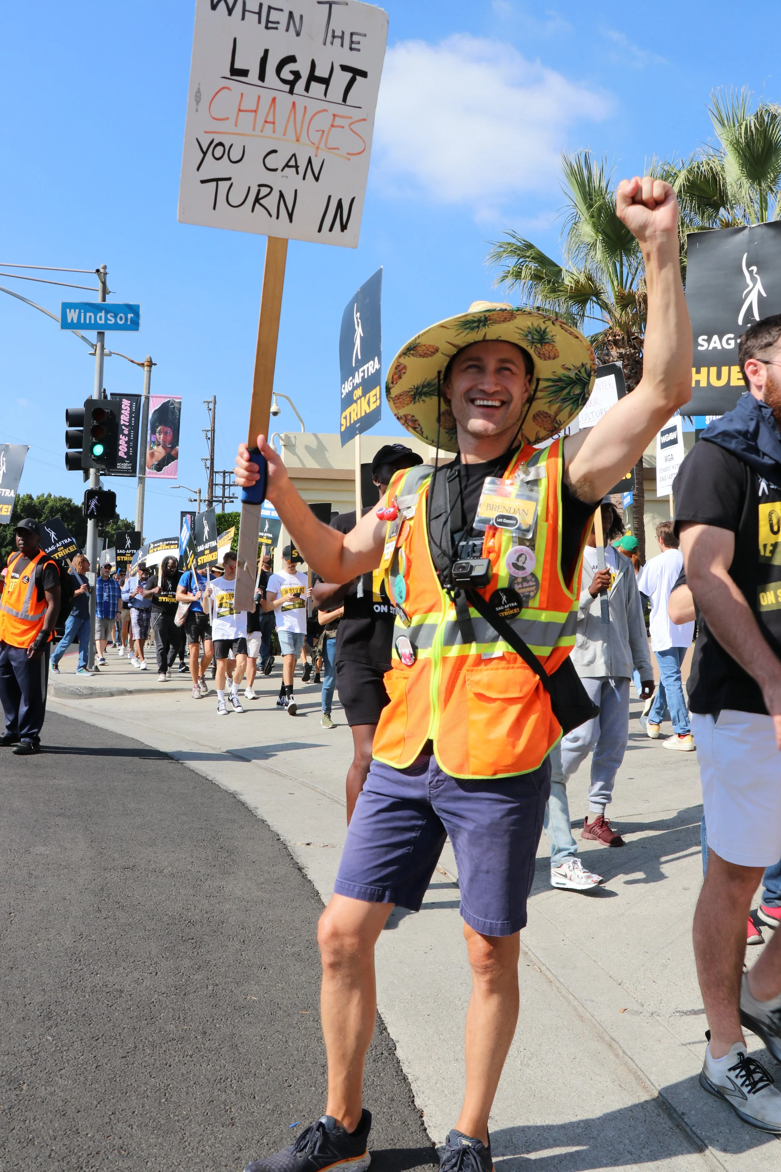 The day after the Hollywood Writers Guild went on strike, Brendan was on the line showing his support and was recommended to SAG-AFTRA’s own organizing committee. Almost instantly, Brendan became a recognized leader at the Paramount Studios Strike Location, coordinating scheduling, training, safety and donations for the duration of the strike. You should see his sock tan line!
